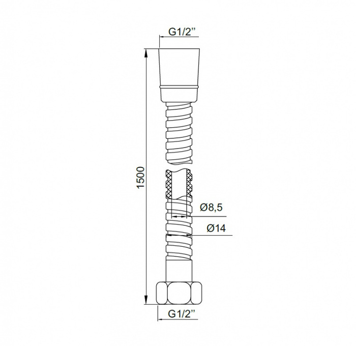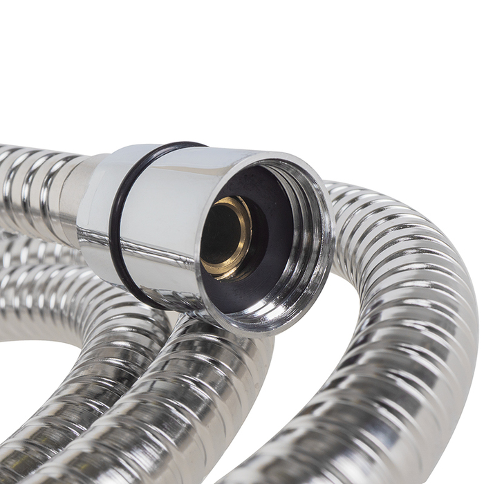 Шланг из ПВХ в оплетке из нержавеющей стали, длина: 1.5 м. Резиновое кольцо на конической гайке для фиксации в держателе.