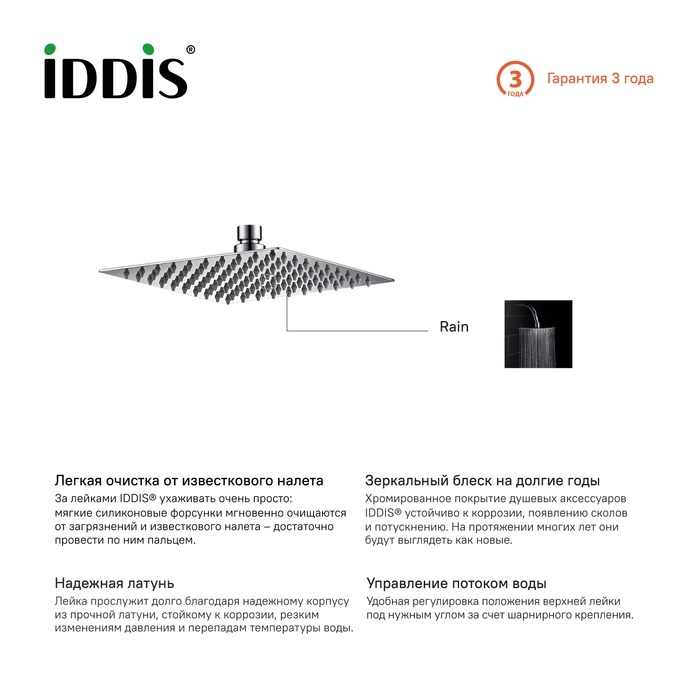 Российский бренд Iddis известен благодаря производству сантехнических аксессуаров. Основанная в 2004 году компания выпускает санитарный фарфор, душевые кабины, мойки, мебель для ванной и многое другое. Весь ассортимент предприятия соответствует ГОСТ, отвечает европейским стандартам качества и безопасности. Заводы Iddis расположены не только в России, но и Европе, Азии. Продукция экспортируется в СНГ.