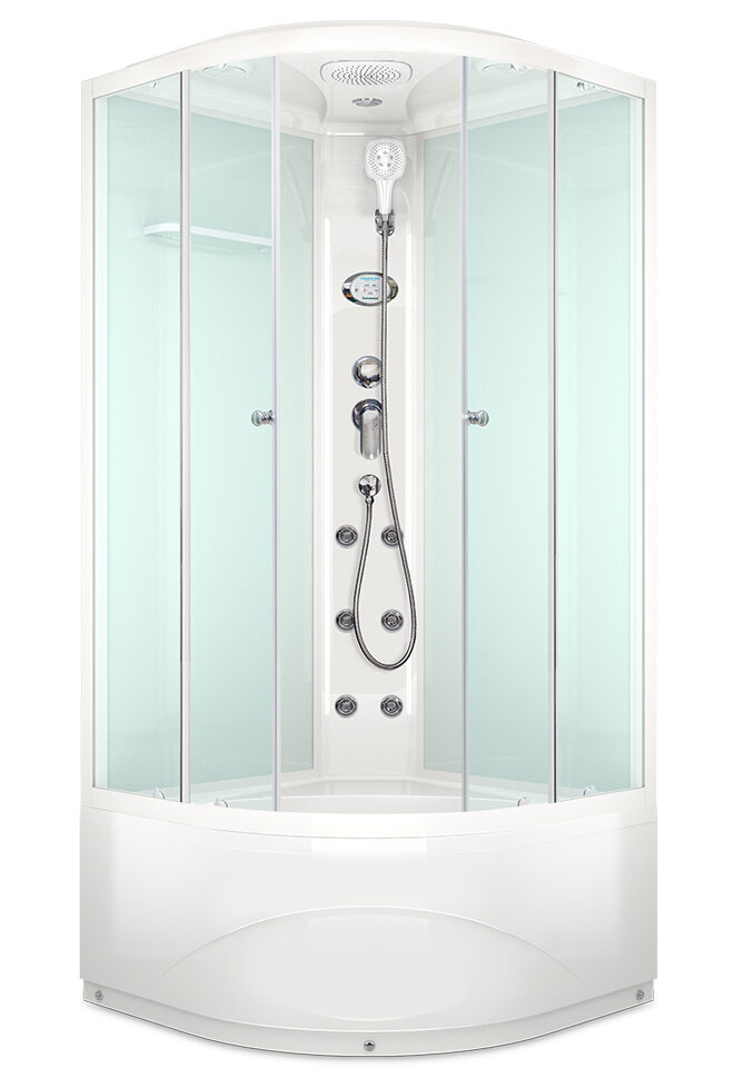 Domani-Spa Delight 99 High это душевая кабина для тех, любит уверенность. Современный дизайн, отличная функциональность и компактность по привлекательной цене, вот что такое кабина Domani-Spa Delight High.Domani-Spa Delight High изготовлена из высококачественного акрила, стекла стенок и дверей проходят специальную обработку и имеют повышенный уровень прочности. Уникальная система крепежей сокращает время сборки кабины в разы, а идеально подогнанные элементы не имеют ни малейшего зазора.В отличии от Domani-Spa Delight, эта кабина имеет высокие стенки поддона и отливы. Такое решение было принято конструкторами компании, чтобы вы могли использовать душевую кабину, как ванну для ребенка или ванночку для ног. Так же стоит отметить, что высокие борта поддона являются еще одним гарантом сухого пола.Выбирайте Domani-Spa выбирайте лучшее.Обратите внимание! Цвета могут отличаться от изображенных на фото ввиду искажения цветов монитором.
