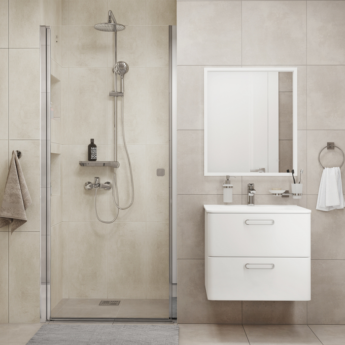 Душевая дверь Ray со стильным глянцевым алюминиевым профилем предназначена для оформления ниши под душевую зону в ванной комнате. Имеет удобный регулируемый размер 890-915х1950 мм, позволяющий сгладить неровность стен (на 10 мм на стороне механизма открытия, на 5 мм с другой стороны). Установка двери возможна как с правой, так и с левой стороны.Алюминиевый профиль обеспечивает стабильность и надежность всей конструкции.Прозрачное закаленное стекло толщиной 6 мм выдерживает случайные удары, что делает дверку надежной и безопасной в каждодневном использовании.Благодаря водоотталкивающему покрытию вода не задерживается на стекле, что исключает образование известкового налета и упрощает уход.За счет надежного механизма дверь открывается плавно и бесшумно в течение всего срока службы.Удобная ручка из сплава металлов.Конструкция оборудована специальным подъемным механизмом (подъем при открывании на 3 мм).Гарантия на душевую дверь IDDIS 2 года, чтобы вы были уверены в ее надежности и высоком качестве.