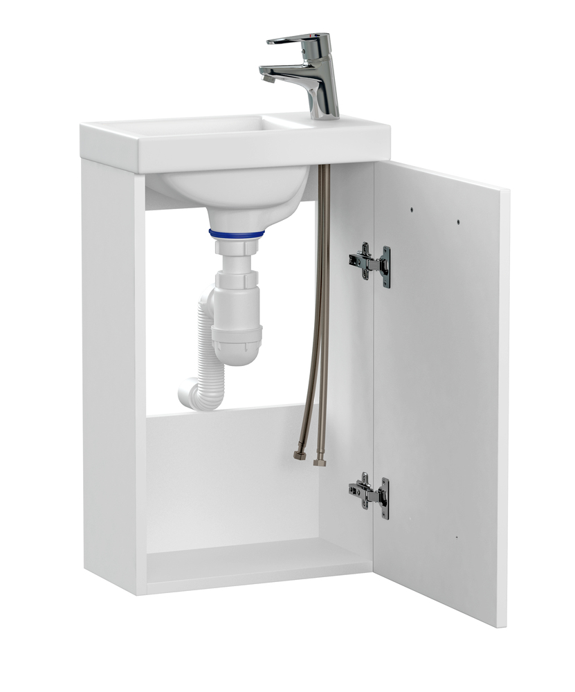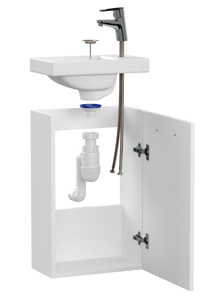 Тумба, раковина, смеситель и сифон сочетаются в дизайне, легко монтируются друг с другом и станут универсальными помощниками в ванной комнате. Все элементы комплекта сочетаются технически, а монтаж интуитивно понятен