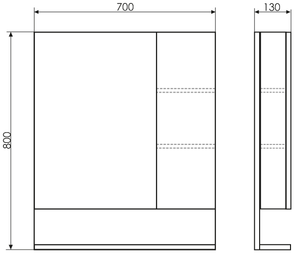 Габариты (ш.в.г.): 70x80x13 смЗеркало с полкой и шкафомБелое / цвет светлое дерево