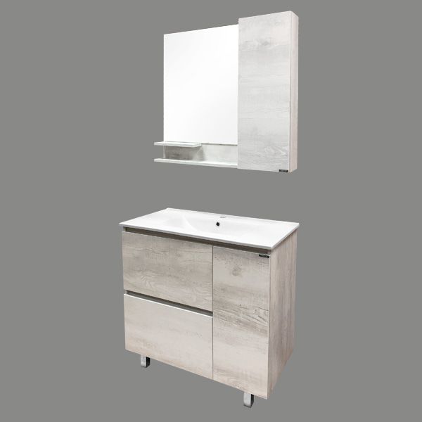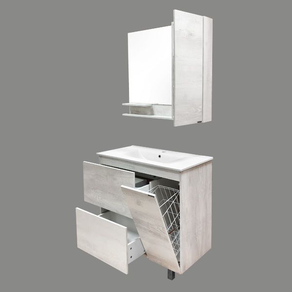 Зеркальное высококачественное полотно с амальгамой на основе серебра. Створка мебельного элемента оснащена петлями с функцией плавного закрывания. За створкой две горизонтальные полки.