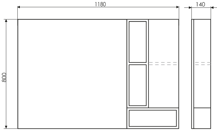 Зеркальное высококачественное полотно с амальгамой на основе серебра. Зеркальная створка оснащена петлями с механизмом плавного закрывания. За створкой две горизонтальные полки. Зеркало-шкаф универсально, может быть подвешено в правом и левом варианте.Габариты (ш.в.г.): 118x80x14 смЗеркало с полкой и шкафом