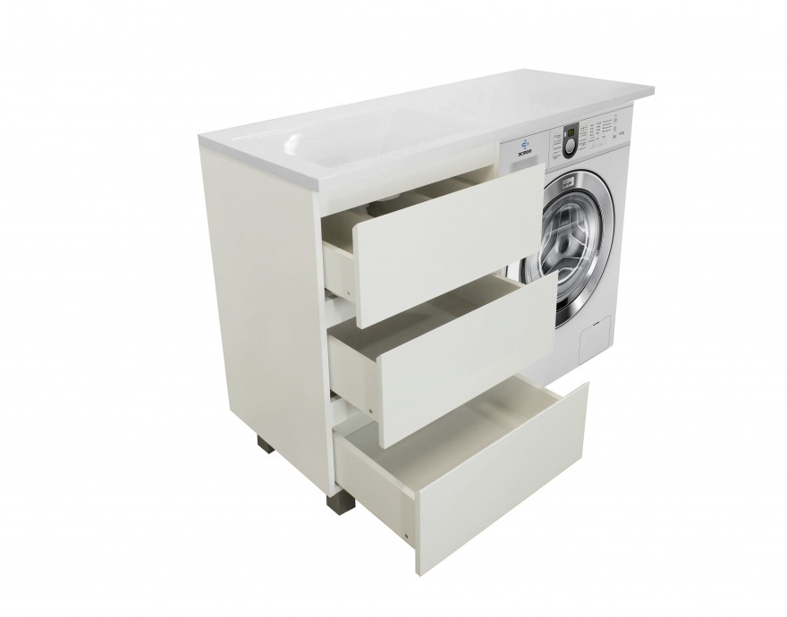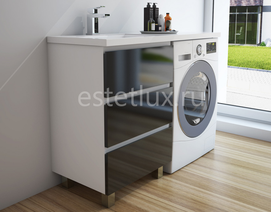 Комплект мебели Dallas Luxe 3 ящика Размер: (ШхГхВ) 448х476х860 Артикул: ФР-00002018 (левый) ФР-00002019 (правый) Приоритетом в выборе тумбы с раковиной является площадь ванной комнаты. Функциональная тумба с тремя ящиками решит вопрос для большинства покупателей. Тумба укомплектована раковиной из литьевого мрамора с удобной чашей, стиральная машина устанавливается под столешницей. Три ящика позволят распределить как крупные, так и мелкие вещи. Мебель выполнена из влагостойкого ЛДСП и качественного MDF с использованием эмали RENNER (Италия). Ящики снабжены системой плавного закрывания. Для мебели используется фурнитура BLUM (Австрия).скопировано с сайта www.estetlux.ruПроизводство изделий из литьевого мрамора
