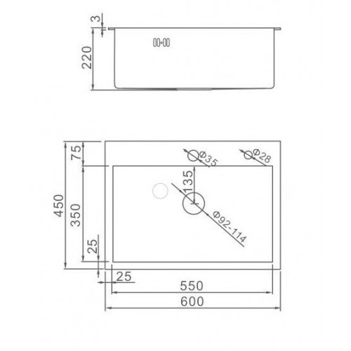 Тип МойкаУстановка Врезная, Интегрированная, НакладнаяМинимальный размер тумбы 60 смМатериал Нержавеющая сталь с PVD покрытиемЧисло основных чаш 1Форма ПрямоугольникОсобенности Перелив, С сифономПокрытие МатовоеБренд GerhansСтрана-изготовитель КитайЦвет ГрафитШирина, см 60Высота, см 22Диаметр слива, мм 90Толщина стенок, мм 3Гарантия 7 летГлубина, см 20Отверстия под смеситель 1