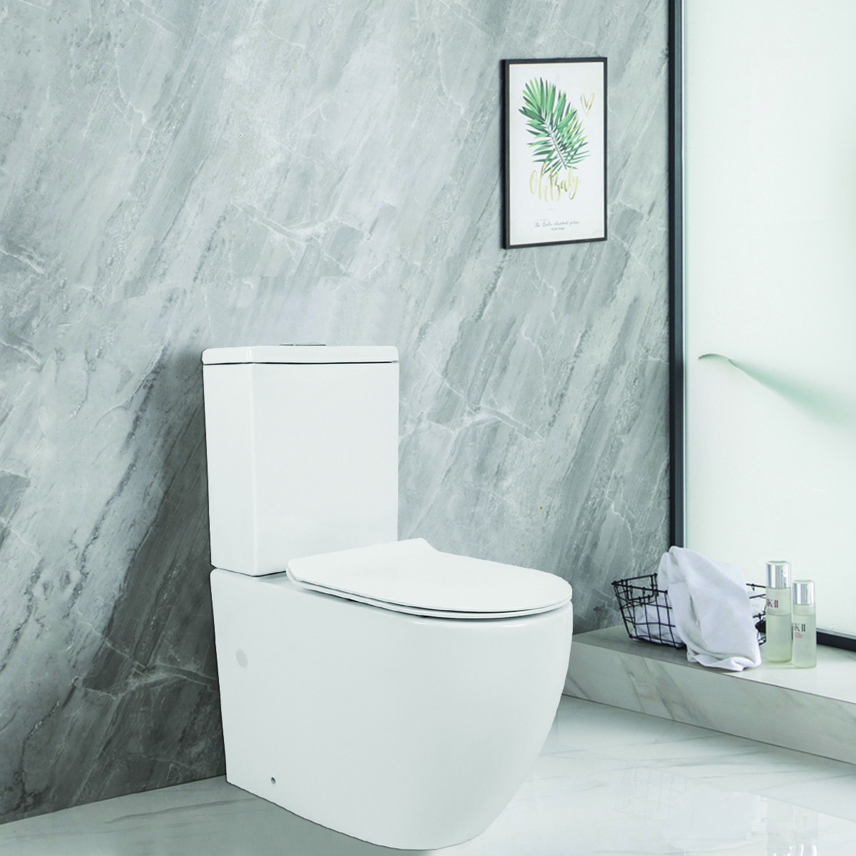 Унитаз напольный Azario CORSA 630x380x830 безободковый, со смывным механизмом Geberit, бачком и сиденьем микролифт, белый