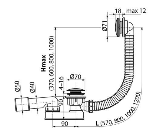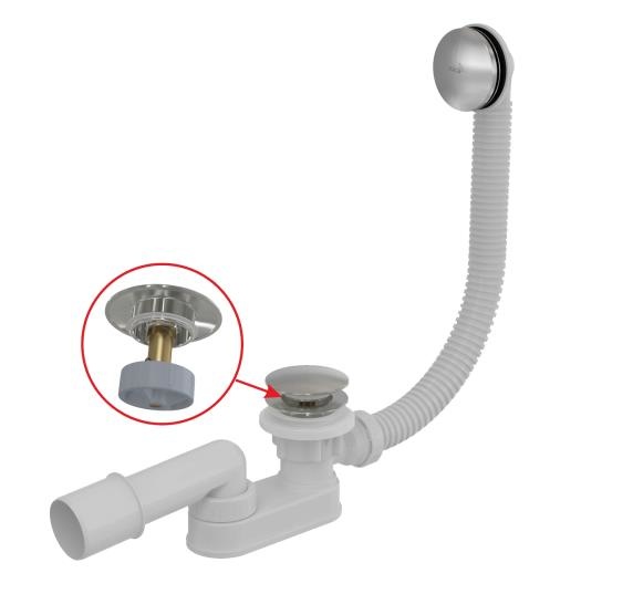 Alcaplast A507KM CLICK/CLACK (длина 57 см.) ХРОМ. Высота сифона 90 мм. Закрытие сливного клапана системой CLICK/CLACK. Содержание комплекта: корпус сифона с системой перелива, хромированная металлическая решетка слива и накладка перелива, хромированная стальная пробка, хромированный латунный донный клапан, гидрозатвор сифона из полипропилена, монтажный комплект, профильное уплотнение. Гарантия производителя 3 года.