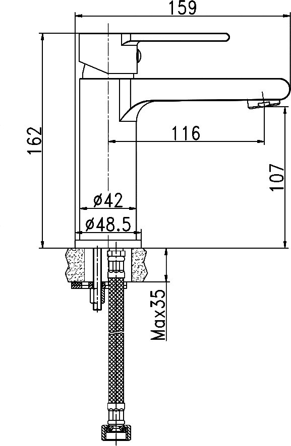 ЛатуньВысота излива: 10.7 смДлина излива: 11.6 смДонный клапан в комплектеКерамический картриджДля монтажа необходимо 1 отверстиеЧерный