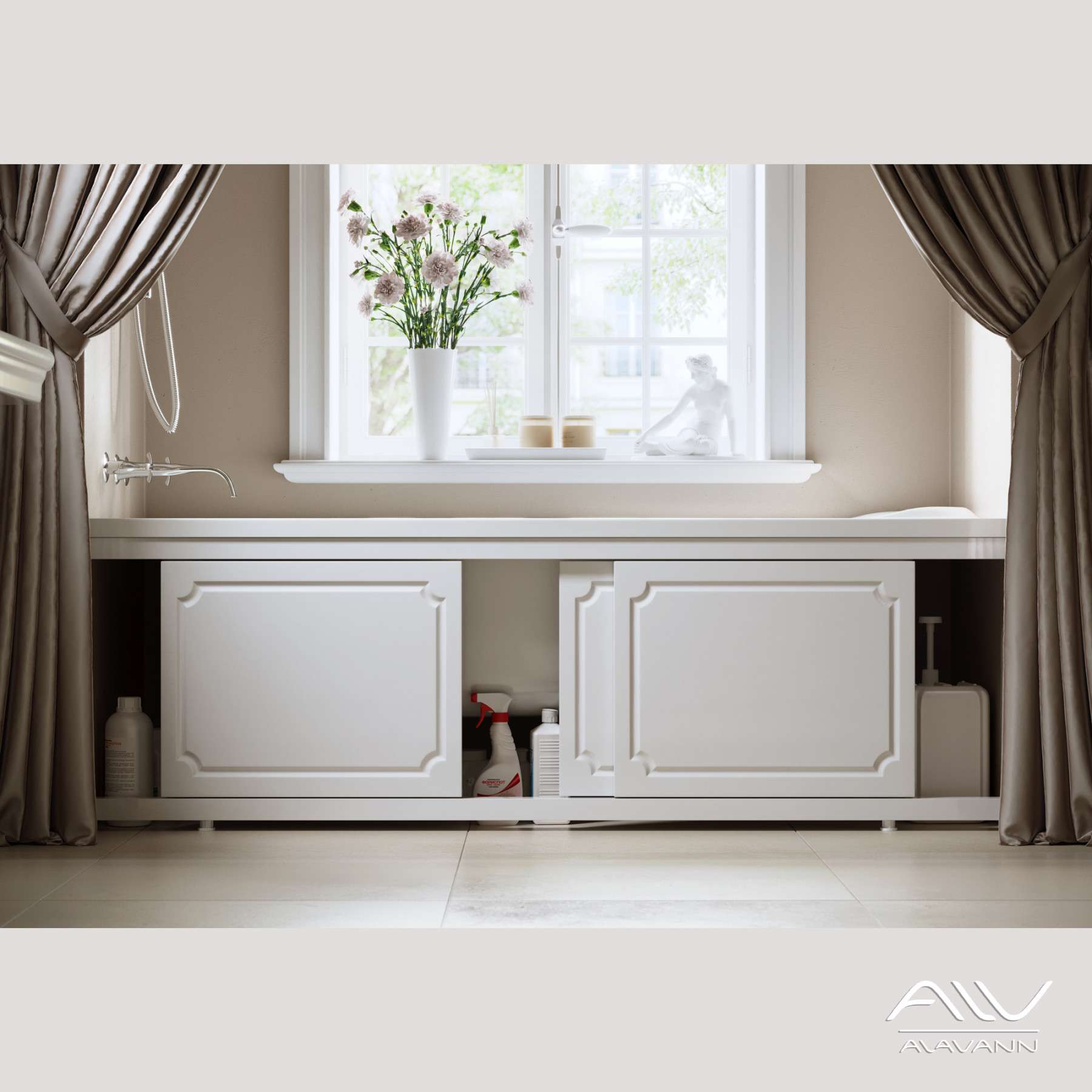 Экран-купе Ametist 1, 7 под ванну - выполнен в лаконичном классическом стиле.В изготовлении экрана-купе нашими дизайнерами впервые применена декоративная фрезеровка фасадов с классическим рисунком, а также отсутствует лицевая фурнитура (у экрана нет ручек). Благодаря этому изделие может гармонично сочетаться со строгой геометрией и прямыми линиями различных интерьеров ванных комнат, выполненных в классическом стиле.Фасады экрана являются передвижными, что делает этот предмет мебели наиболее функциональным в использовании. Шторки выполнены из ламинированной МДФ и окрашены белой глянцевой эмалью.Торцы фасадов оформлены кромкой ПВХ, которая предотвращает их разбухание и увеличивает срок службы изделия.Профиль каркаса и стойки выполнены из алюминия и окрашены эмалью методом порошкового напыления. Такой способ окрашивания придает каркасу абсолютную устойчивость к воздействию влаги и препятствует появлению коррозии. В стойки ввинчиваются регулируемые по высоте (до 100 мм) опоры. Оригинальная конструкция каркаса экрана увеличивает жесткость изделия, что предотвращает прогибание профиля.Экран-купе Ametist 1,7 под ванну в классическом стиле внесет заключительный штрих в оформление интерьера вашей ванной комнаты.Производитель оставляет за собой право без предварительного уведомления покупателя вносить изменения в конструктив или технологию изготовления изделия, которые не влияют на функционал изделия