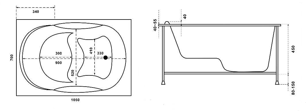 Комплектация ванны: ванна + каркас. СЛИВ-ПЕРЕЛИВ заказывается отдельной позицией и не входит в комплект ванн
