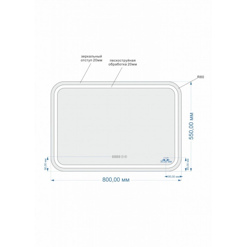 Габариты (ш.в.г.): 55x80x4 смС сенсорным выключателем, управляется легким касанием сенсорной кнопки