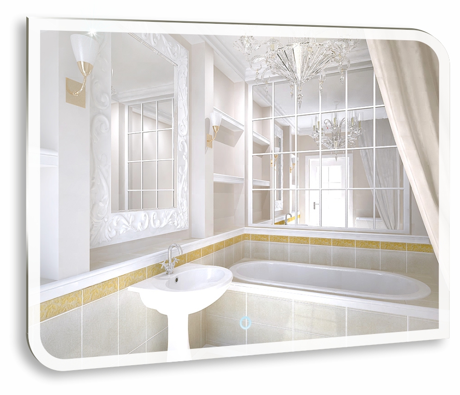 Зеркало для ванной комнаты с LED подсветкой и сенсорным выключателем. Потребляемая мощность 27 W. Класс защиты IP44.