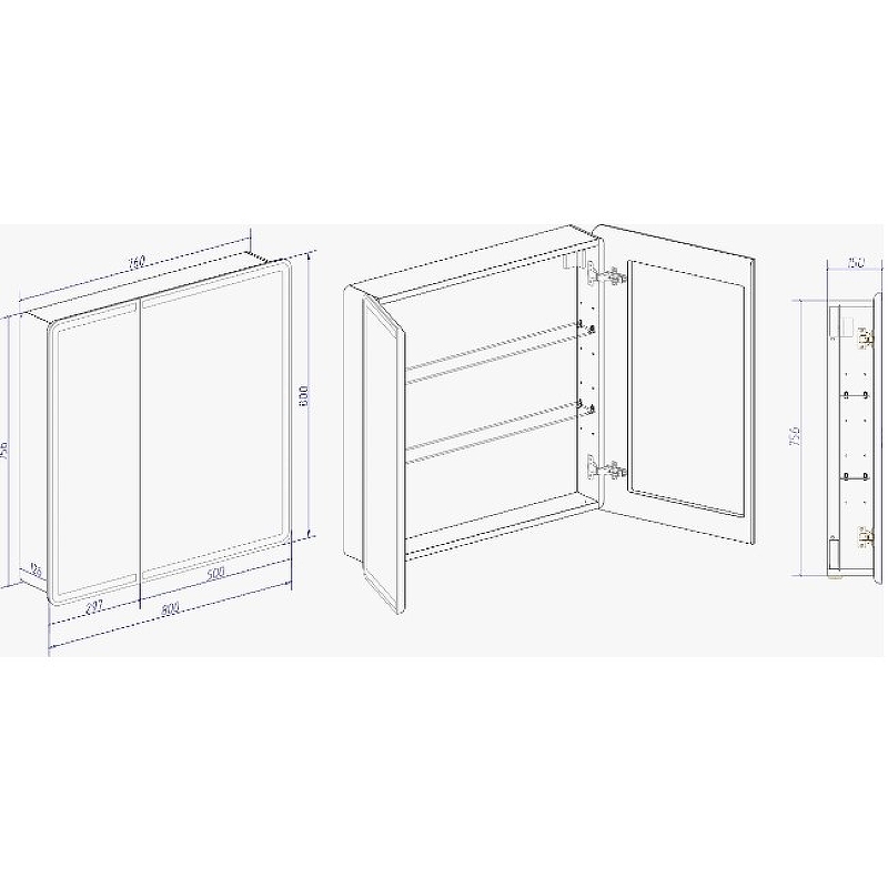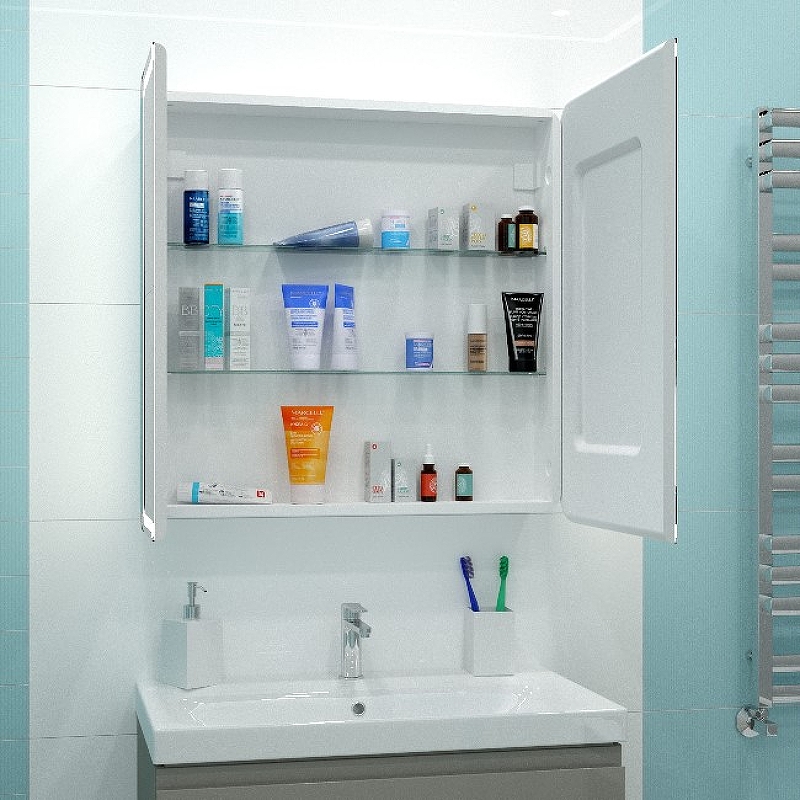 Зеркало-шкаф для ванной комнаты. В комплектацию входит встроенная LED-подсветка, которая обеспечит мягкое и ровное свечение по периметру всего изделия, включается простым взмахом руки. Большим